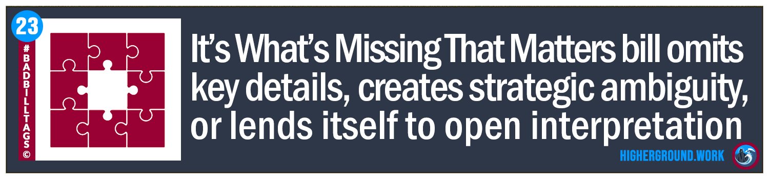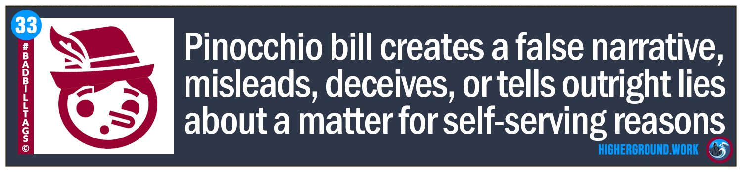 In line with our mission to Inform & Warn the public about bad education policies, practices, programs, & pedagogies, we have developed a series of what we call Bad Bill Tags that explain the different elements of what makes a bill objectively bad.