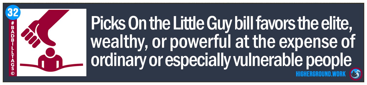 We apply these tags to bills listed in our BAD BILL Tracker. These are just a few of the most notable BAD BILLS from the latest session. We hope our tags & tracker provide a helpful lens through which to analyze & scrutinize bills so as to protect our faith, families & freedoms against being overcome by arrogant governance and bureaucratic hubris.