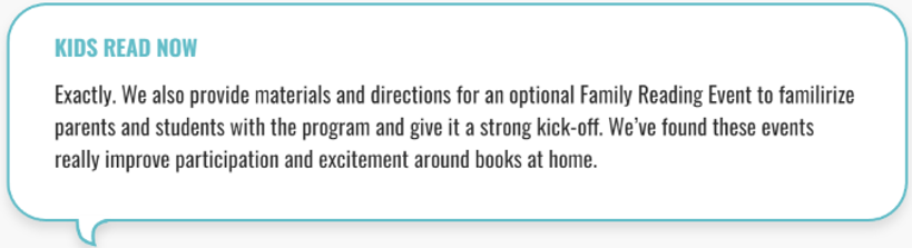 4. KRN provides materials and directions to help the school “familirize” (their word, not mine) parents and kids with this deeply mysterious, highly complex process of READING A CHILDREN’S BOOK.